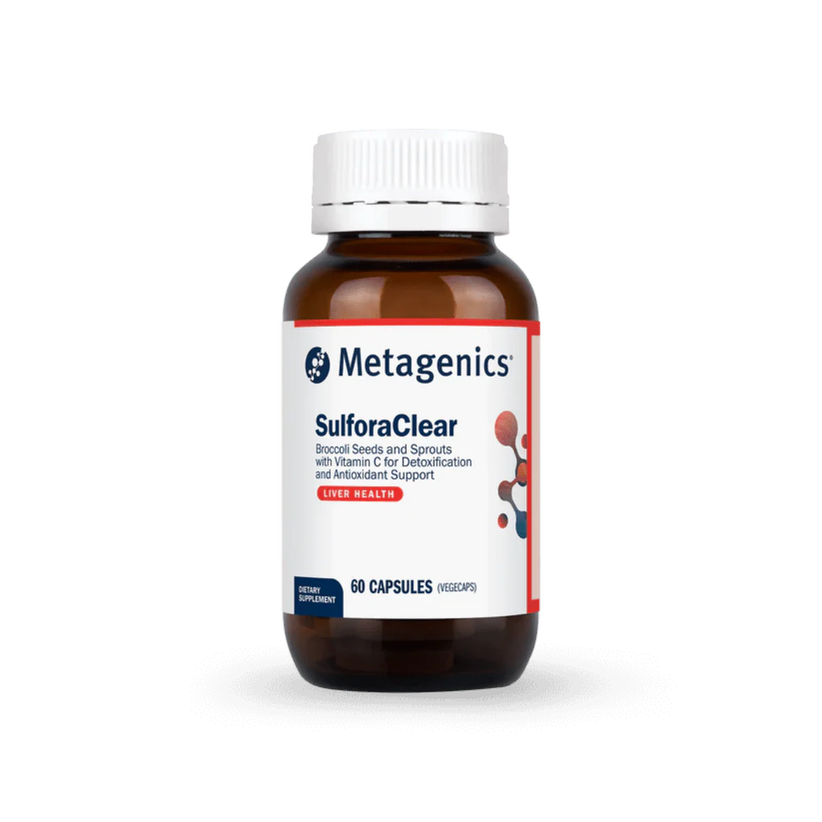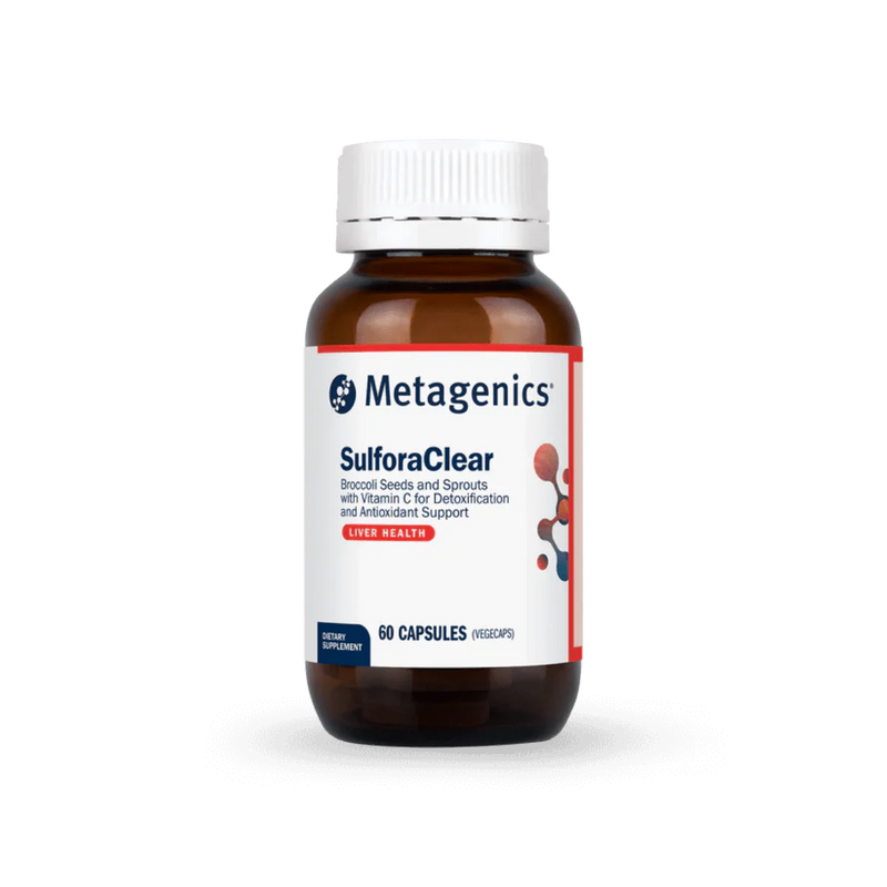 - Metagenics SulforaClear uses broccoli material that is grown without the use of herbicides, pesticides or other potentially harmful chemicals. In addition, the seed is tested and cleared for over 400 pesticides