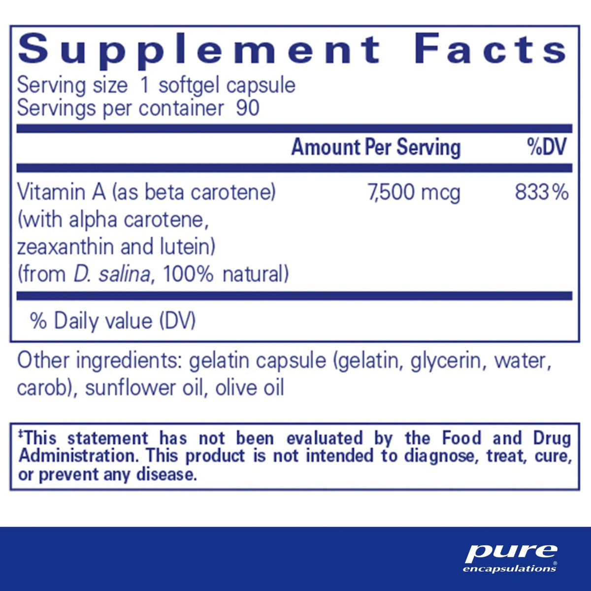 Vitamin A (7,500mcg) as beta caratene with alpha carotene, zeaxanthin and lutein.