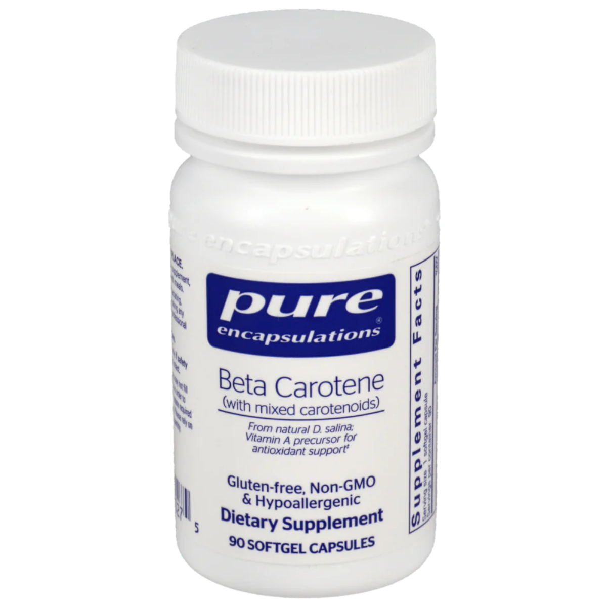 Beta carotene is a dietary antioxidant and vitamin precursor that supports the body's immune system and promotes visual acuity and vascular health.