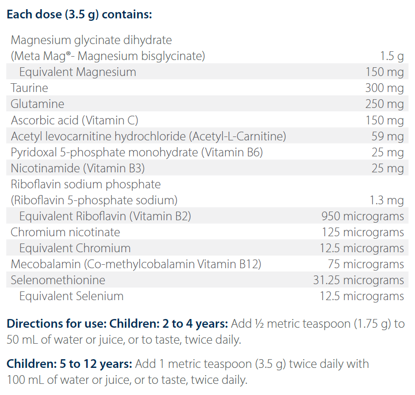 Energy and nervous system support: Growing children can experience high physical demands, as well as emotional stressors. Both physical and emotional stress can increase the requirements for magnesium and contribute to symptoms such as lethargy, anxiety, insomnia and irritability. Developmental processes during childhood also create a demand on energy requirements. Magnesium is important for energy production as it plays a role in energy metabolism and mitochondrial activity.