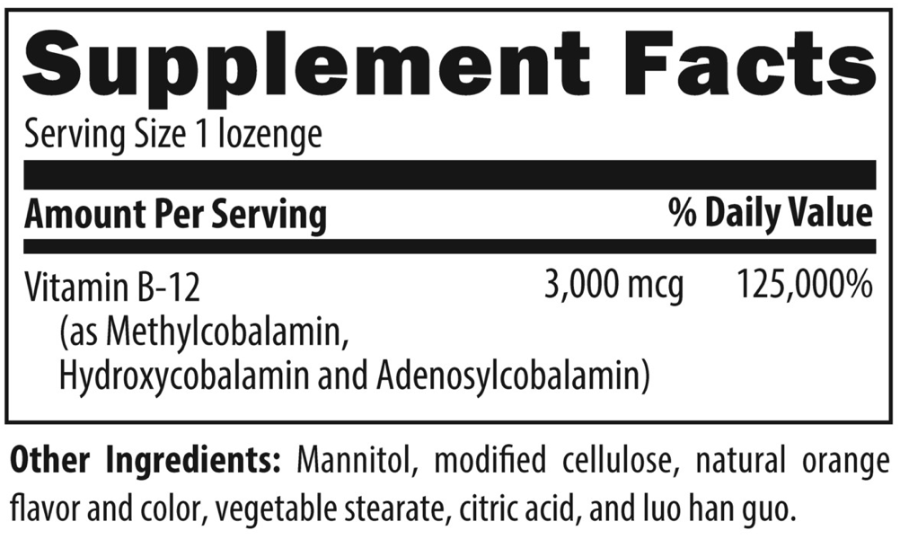 Tricobalamin™ lozenges provide a synergistic combination of the three bioavailable forms of vitamin B12, as methylcobalamin, hydroxycobalamin, and adenosylcobalamin. These three forms of B12 are naturally present in foods, and can be readily converted in the body to the active intracellular forms of B12. Tricobalamin™ lozenges are formulated to support healthy levels of vitamin B12. Tricobalamin’s lozenge delivery system allows for optimal absorption of vitamin B12.