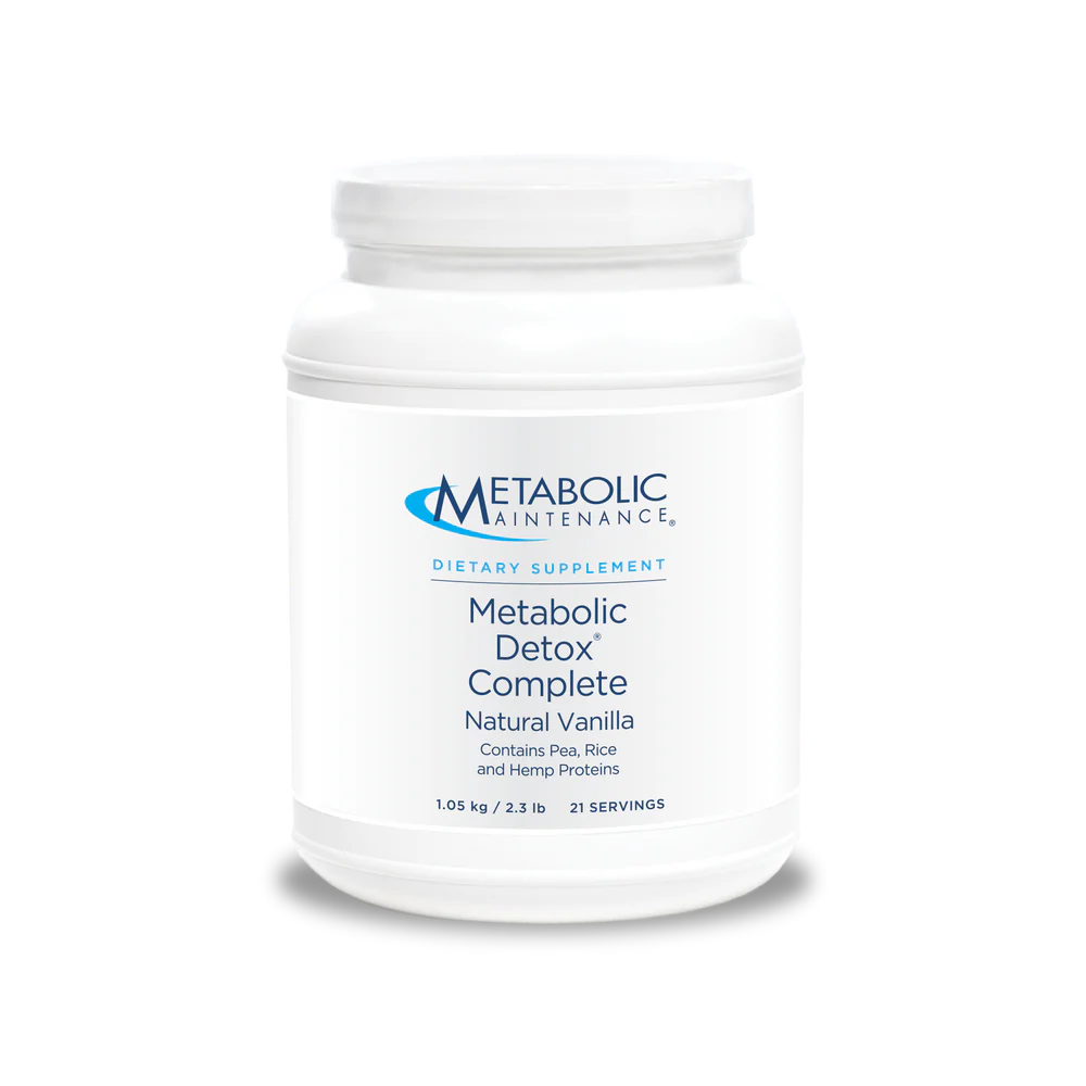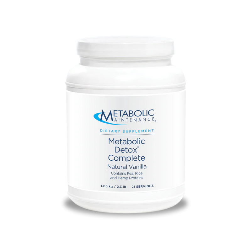 Metabolic Detox Complete, in chocolate or vanilla, is an excellent supplement for comprehensive detoxification programs and elimination diets. It contains a hypoallergenic blend of pea, rice, and hemp, non-GMO proteins, beneficial medium chain triglycerides, and omega-3 fatty acids.