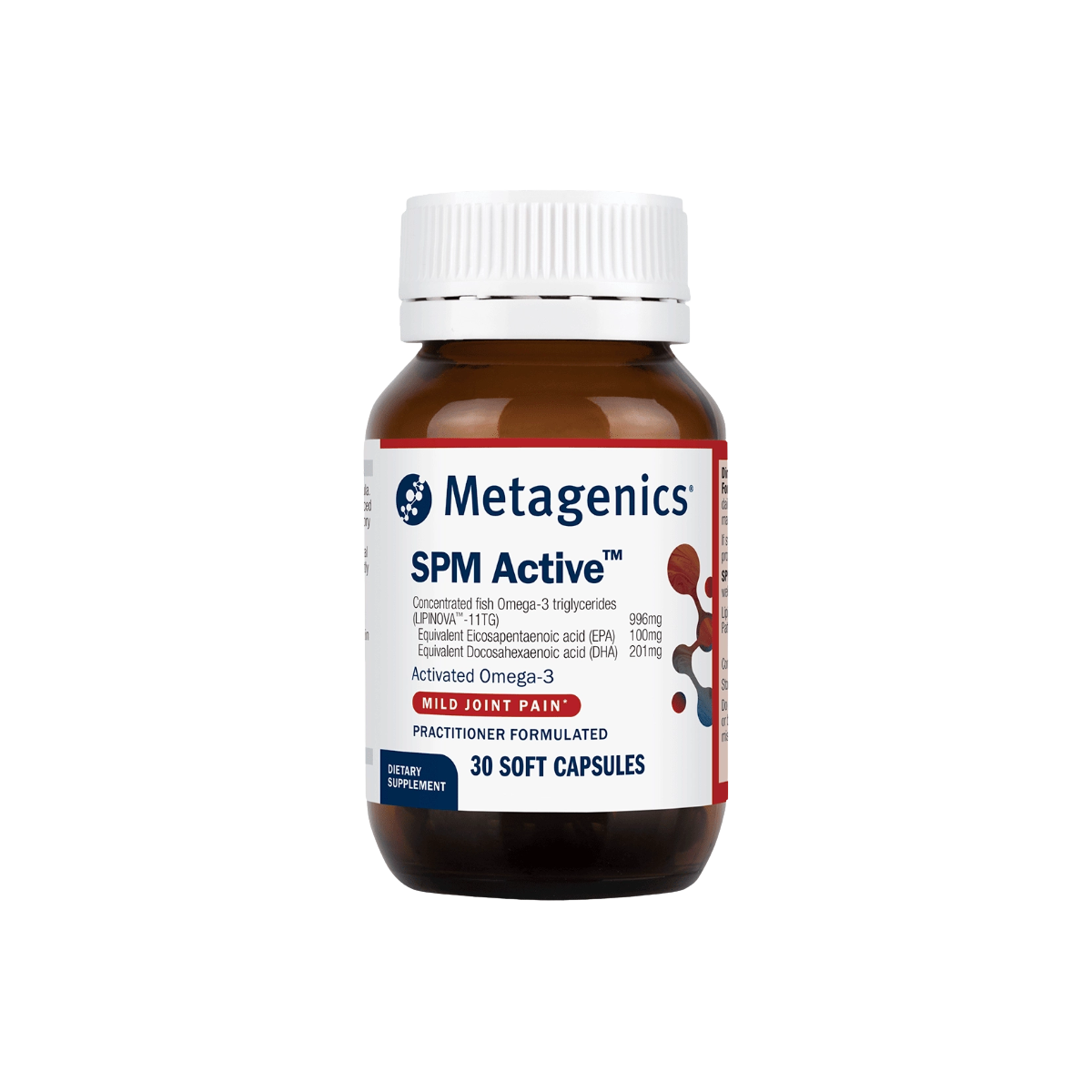 - SPM Active contains standardised and concentrated specialised pro-resolving mediators (SPMs) exclusive to Metagenics.
