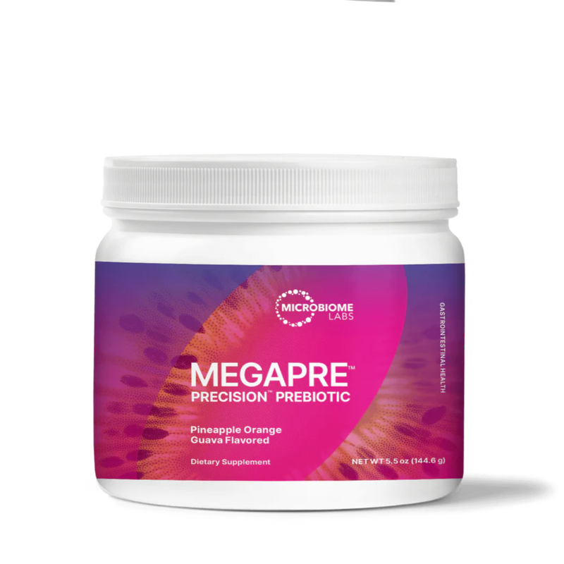 MegaPre is the first Precision Prebiotic supplement made up of clinically tested, non-digestible oligosaccharides that can increase microbial diversity and selectively feed beneficial bacteria like Akkermansia m;uciniphila, Faecalibacterium prausnitzii, and Bifidobacterium prausnitzii and Bifidobacteria.