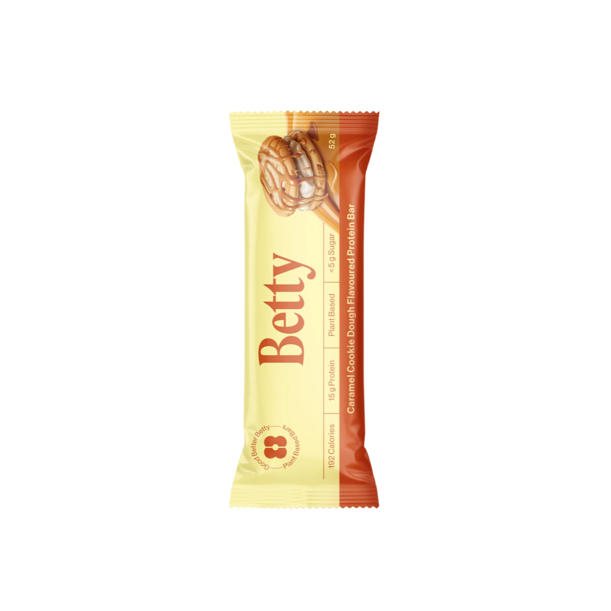 Boasting all natural ingredients, Caramel Cookie Dough Betty Bar packs 15.6 grams of protein per serve, is an excellent source of fibre, good source of zinc, and contains 500 million CFU (colony forming units) of probiotics for gut health. With a modest 199 calories and only 4.2g of sugar, this delicious bar ticks all the boxes. Plant based, soy free and ketogenic friendly, it strikes the perfect balance between indulgence and nutrition.