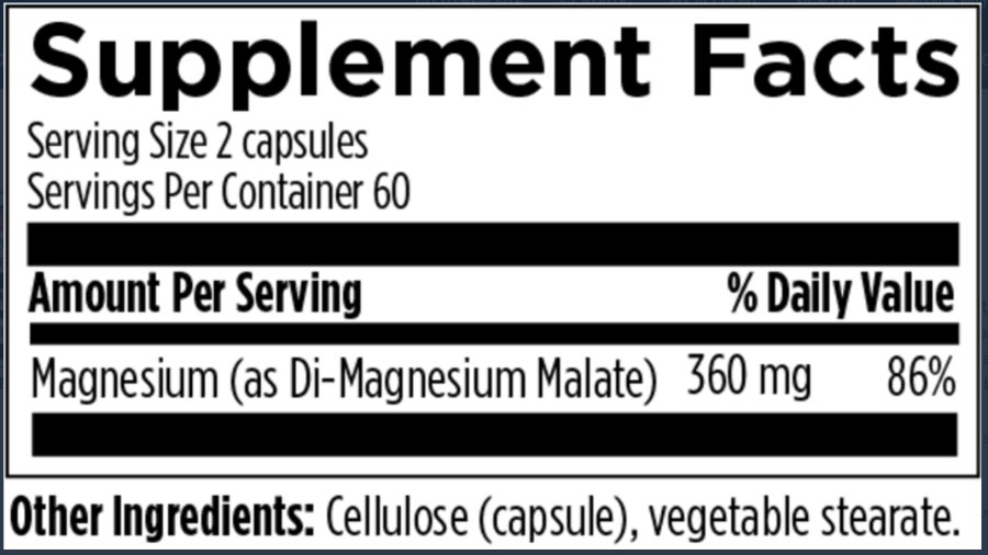 Magnesium Malate is a highly bioavailable form of magnesium. It contains di-magnesium malate, which is magnesium bound to malic acid.