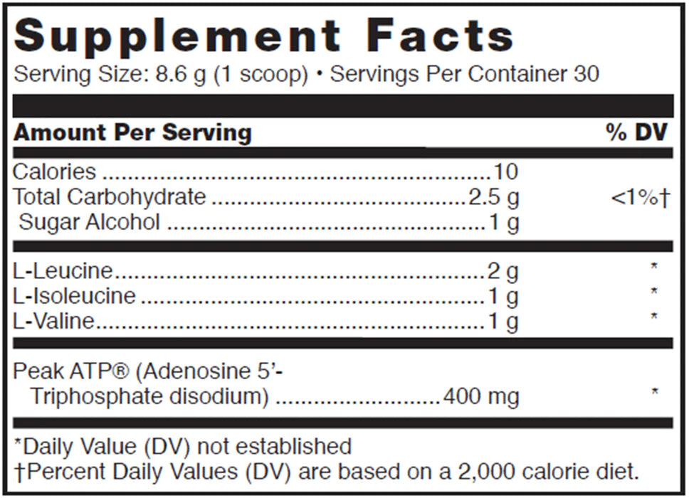 Klean BCAA + PEAK ATP® by Klean Athlete™ is a NSF Certified for Sport® supplement that supplies a 2:1:1 ratio of the branched chain amino acids leucine, isoleucine and valine, as well as 400 mg of ATP in each serving.